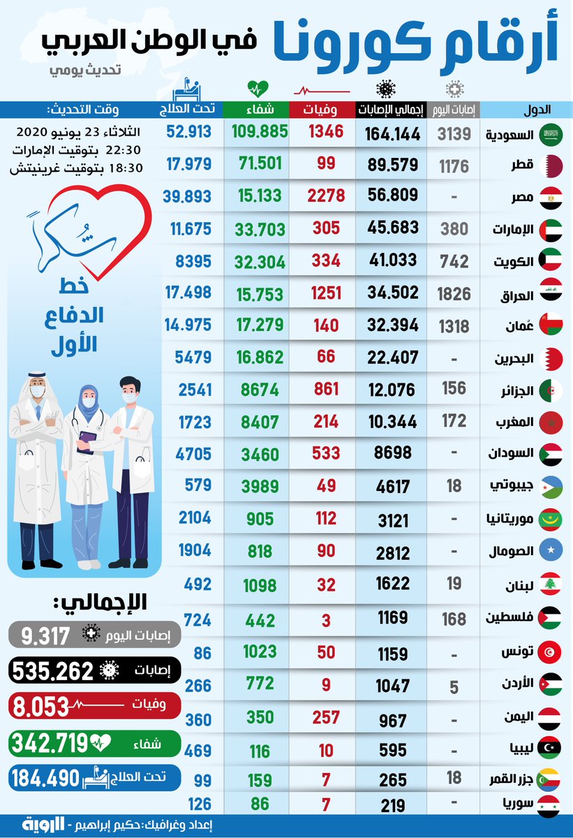 صحيفة الرؤية أرقام كورونا في الوطن العربي